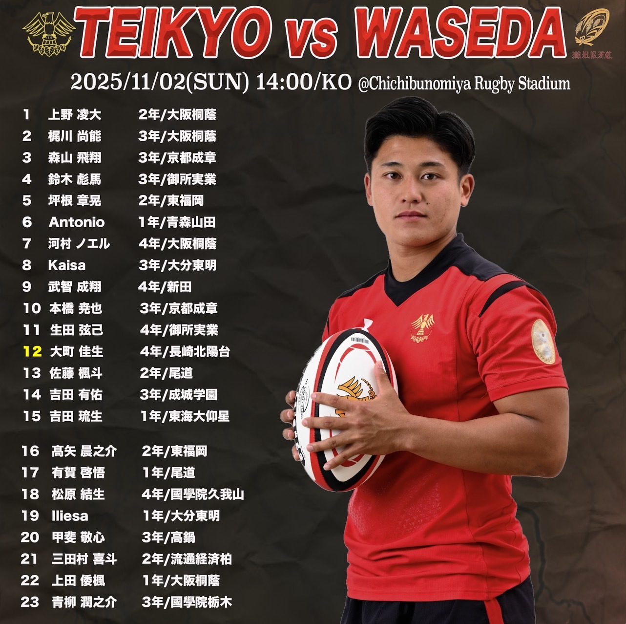 【11/2(日) 早稲田大学戦、メンバー発表】