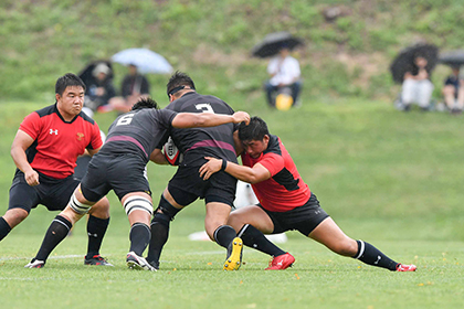 「前半、コリジョン、体をぶつけていく部分で受けてしまいました。1対1で負けるフィジカルではないと思っていますが、気持ちの部分で受けてしまっていたのだと思います。タックルも、自分たちではしっかり行っているつもりでも、無意識に待ってしまって、前に出ようという気持ちが相手の方が勝っていたのだろうと思います。前半の最後など、僕たちも気持ちが入っているときには前に出ることができていたので、やはりマインドの部分なのだと感じます。後半は最初のスクラムで僕たちFWがターンオーバーされてしまって、勢いを相手に渡すことになってしまい、悔しいです。言い訳になってしまうのですが、FWのメンバー交替もあって、そこでの意思統一があいまいで、8人で組むという意識が薄いまま組んでしまったように思います。これは大きな反省点です。スクラムはゲームを通して、いいところと悪いところがはっきり見えたと思います。最初は、やろうとしていたことができていなかったのですが、ファーストスクラムでペナルティをもらってしまってから、話し合って、その後は修正できた点はよかったです。僕たちがやろうとしているスクラムを組めれば勝てるという自信はつきました。自分はPRとしてスクラムにこだわるということを春からずっと言ってきて、今後もスクラムを強くしていきたいと思っているので、対抗戦ではスクラムでのペナルティはゼロにして、しっかり押し込めるようにしていきたいです。試合の途中で修正できることがわかったので、それを最初からやれるように相手の研究もして、プランを立てて、いい準備をして、ミスなく、最初からスクラムで圧倒していきたいです。」