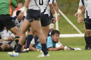 ウトから、今度はFWの連続攻撃で加点する。守っても、LO飯野、LO町野、FL