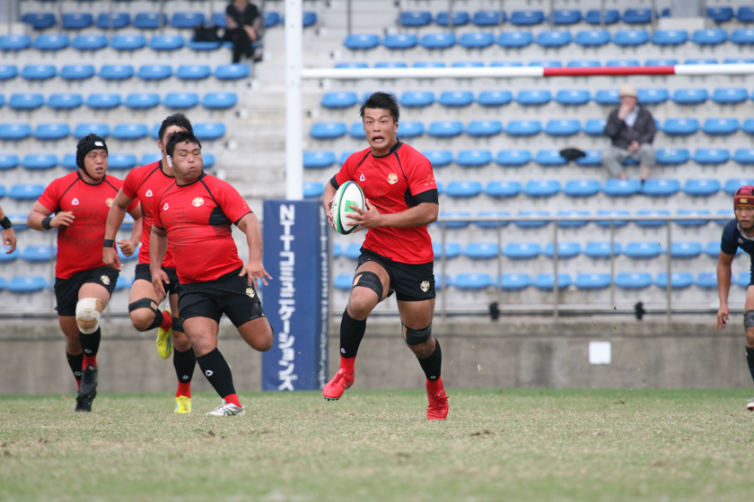 ルを押し込んで先制トライを奪うと、その後もFW、BKで攻め続ける。対抗戦初先発し