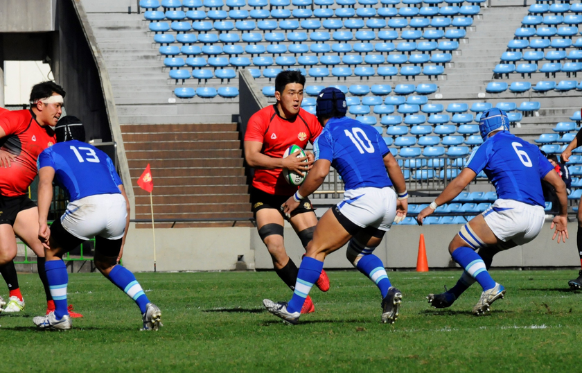 ジュニア選手権決勝の対戦相手は東海大学。前半、秩父宮ラグビー場が初めてというメンバーもいる中、緊張からか、帝京はミスが散見し、波に乗り切れない。それでも、FW、BKともにしっかりと体を当て続け、前に出る。17分、ターンオーバーからの連続攻撃で、最後はFB元田が相手ディフェンスを振り切って先制トライを奪う。34分にはFWで連続攻撃。ラックからLO金(嶺)がディフェンスの下に潜り込むようにしてグラウンディングし、トライ。攻められるシーンもあるが、しっかりと守り、14-0で前半を折り返した。後半は、セットプレーの安定もあり、ゲーム自体も落ち着きを見せる。しかし、11分にモールでトライを奪われ、7点差とされる。接戦の中、お互い激しく体をぶつけ合う。25分にはFW戦から、LO今村がトライで突き放すと、終了間際にも2トライを奪い、35-7で勝利。帝京がジュニア選手権5連覇を飾った。