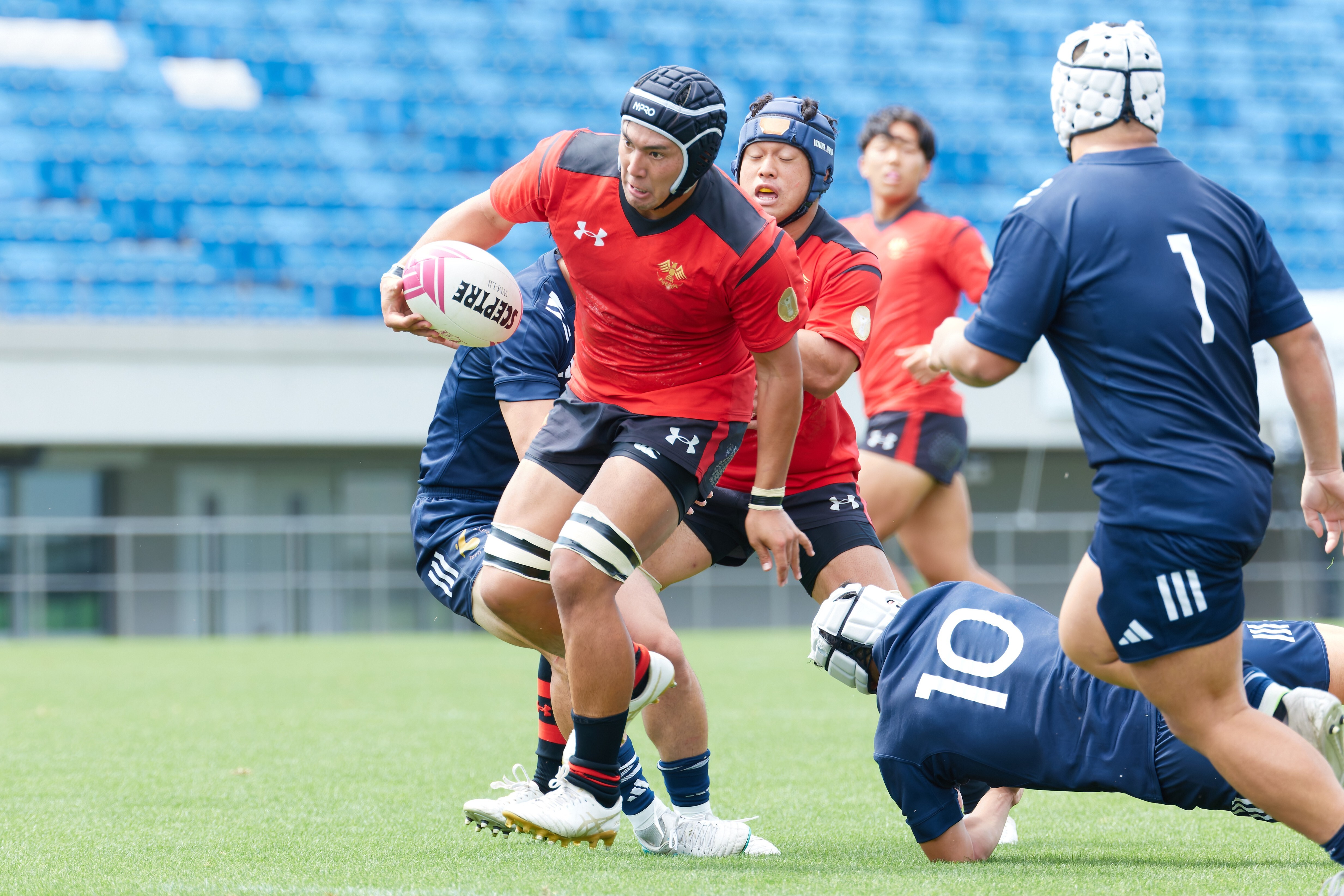 ただ、ここからペナルティも増えてくる。20分、PGを決められて失点(47-3)。しかし、直後の20分、ラインアウトが乱れるも、CTB佐藤(楓)がうまく拾って前進。CTB上田(倭士)にパスし、上田が走り切ってトライ(54-3)。