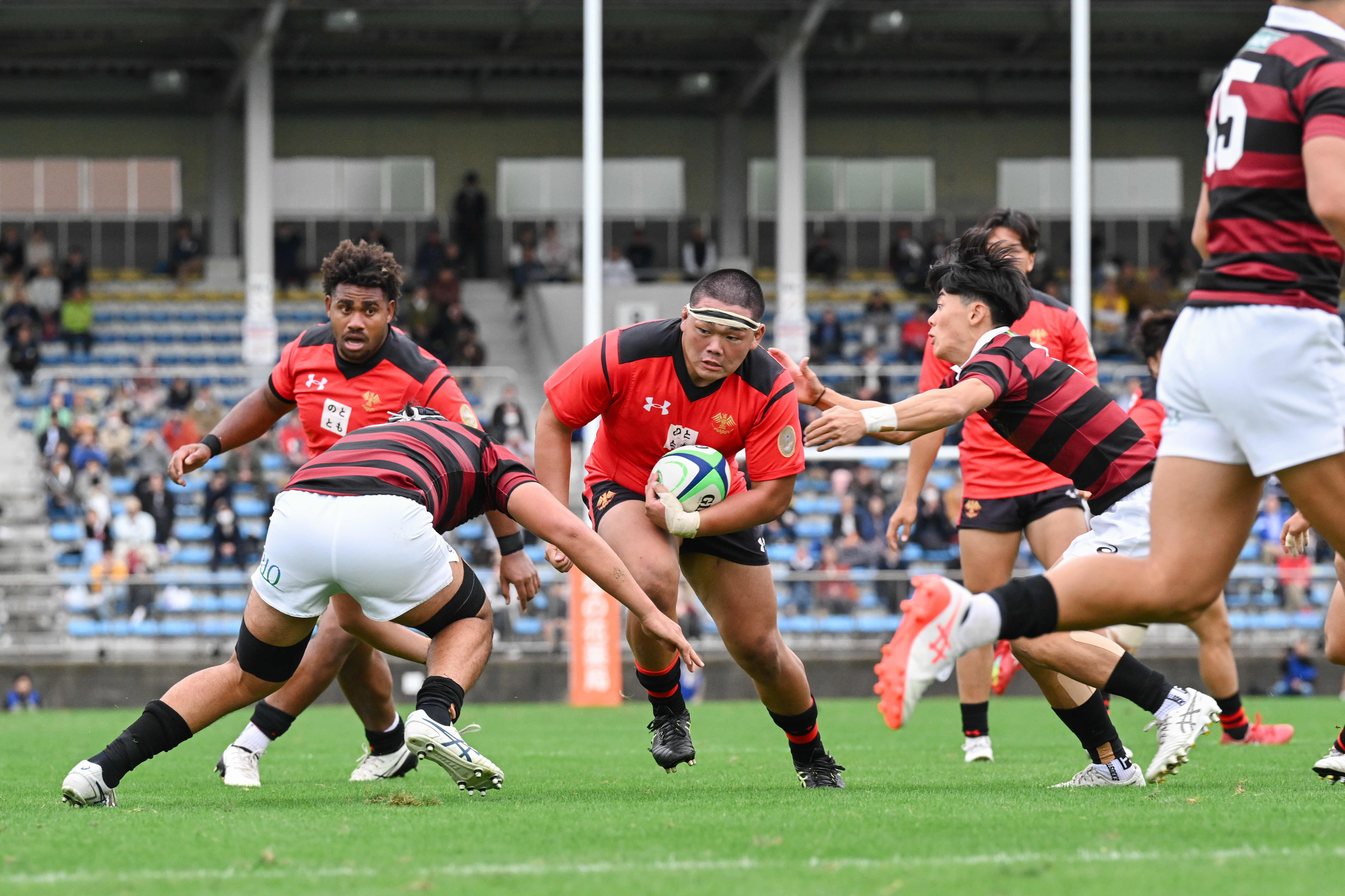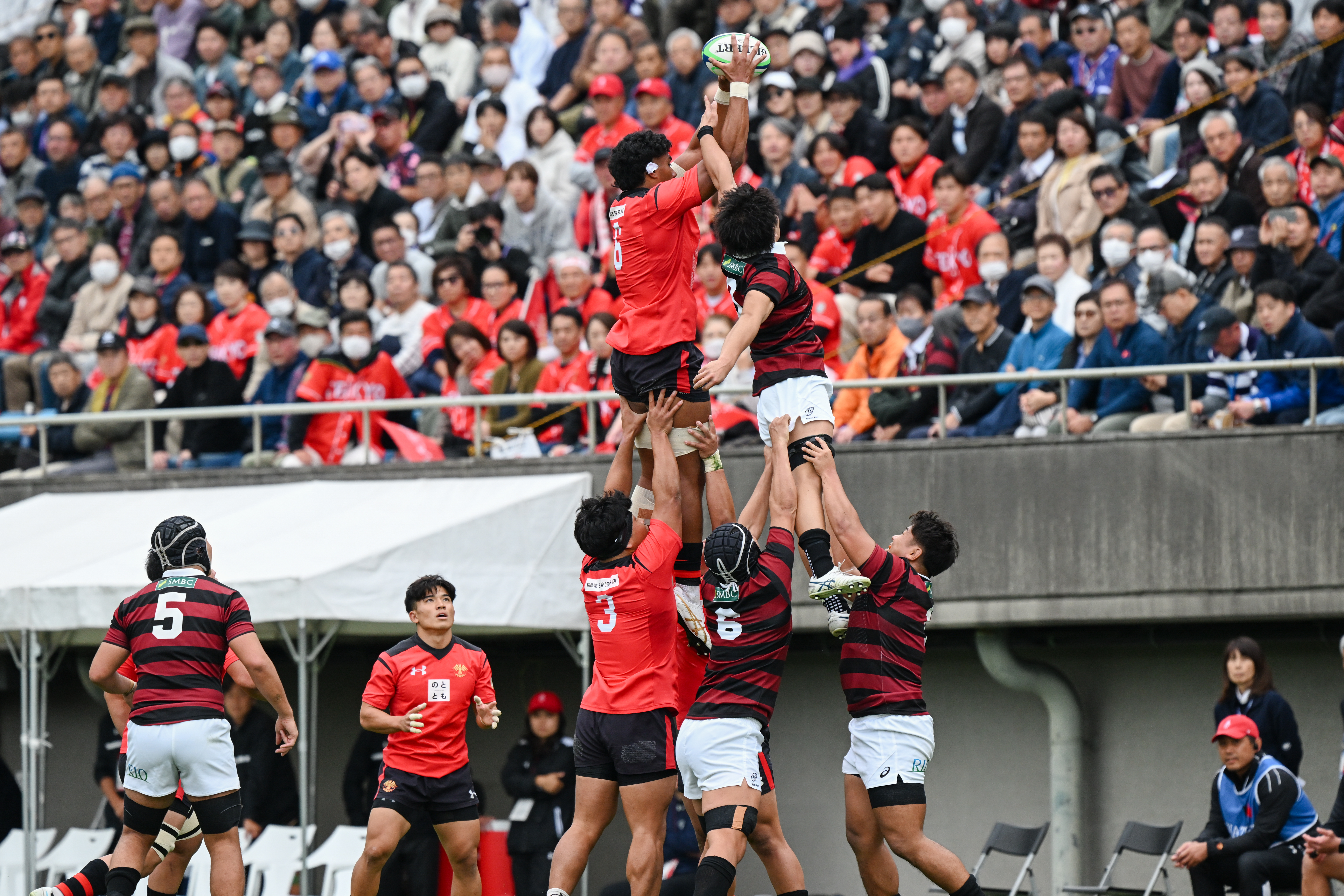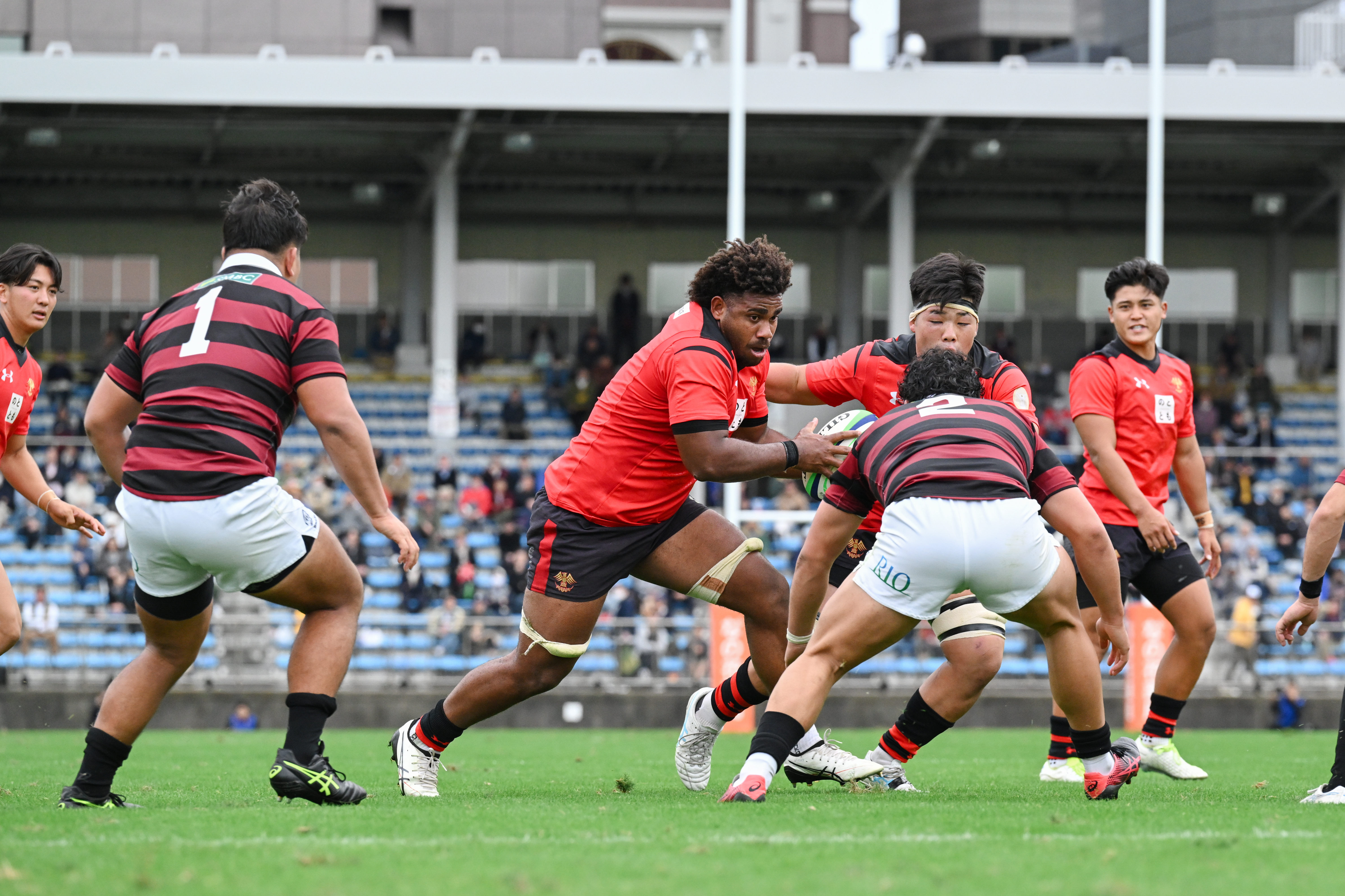 キックオフからのディフェンスもWTB青栁、No.8ダウナカマカマらの好タックルで守る。相手のプレッシャーも激しいが、なんとか守り切り、SH三田村がタッチに蹴り出しノーサイド。25-20で帝京が勝利した。