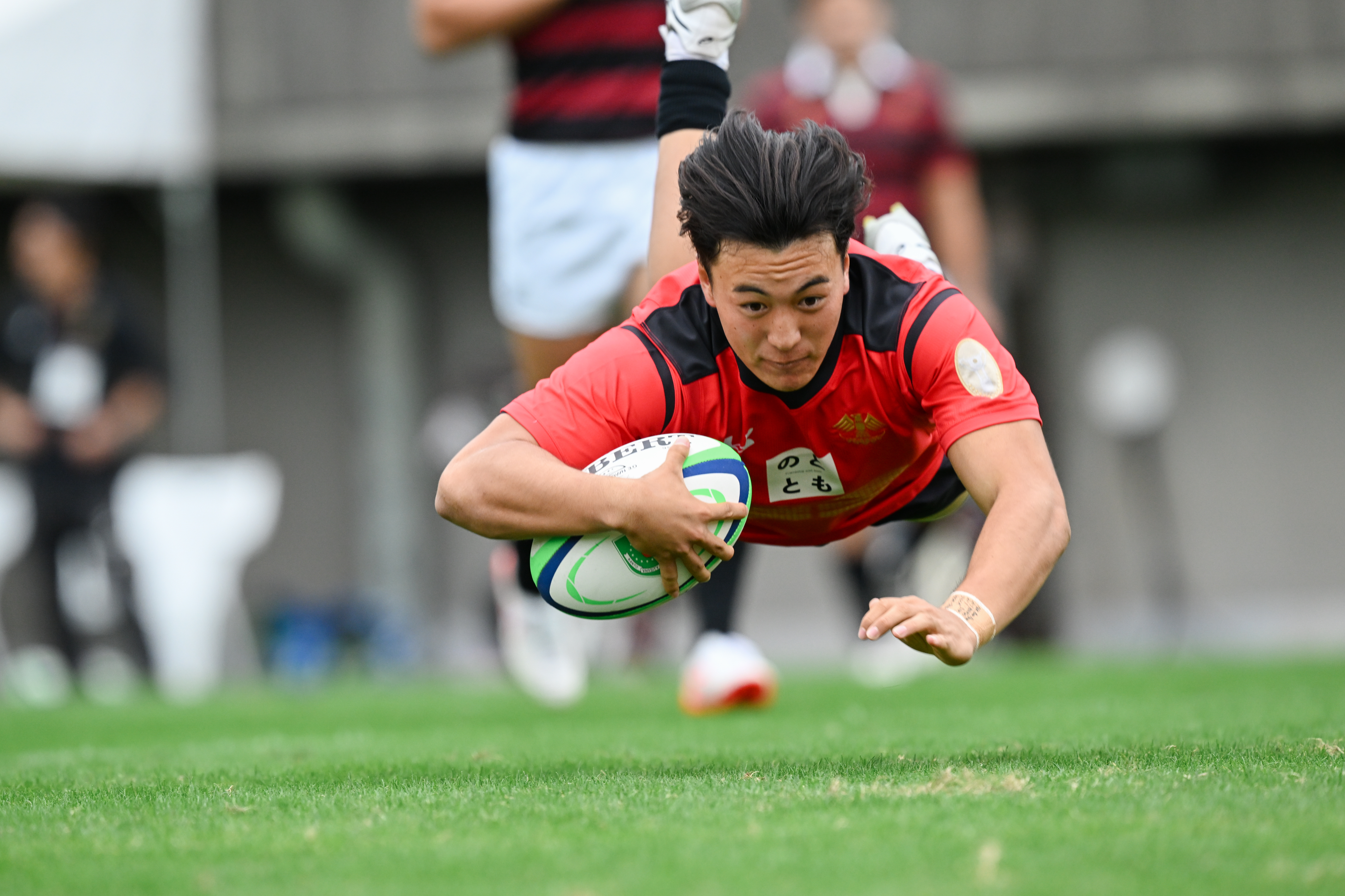 ここからは守りの時間帯になる。しかし、帝京は守りからチャンスを作る。10分、PR上野、FL鈴木(彪)の好タックルで相手がノックフォワード。HO梶川が拾ってLO坪根にパス。坪根からSO本橋-WTB吉田(有佑)と渡り、吉田が大きく前進。さらにSO本橋へとパスを戻し、本橋が走り切ってトライ(7-7)。