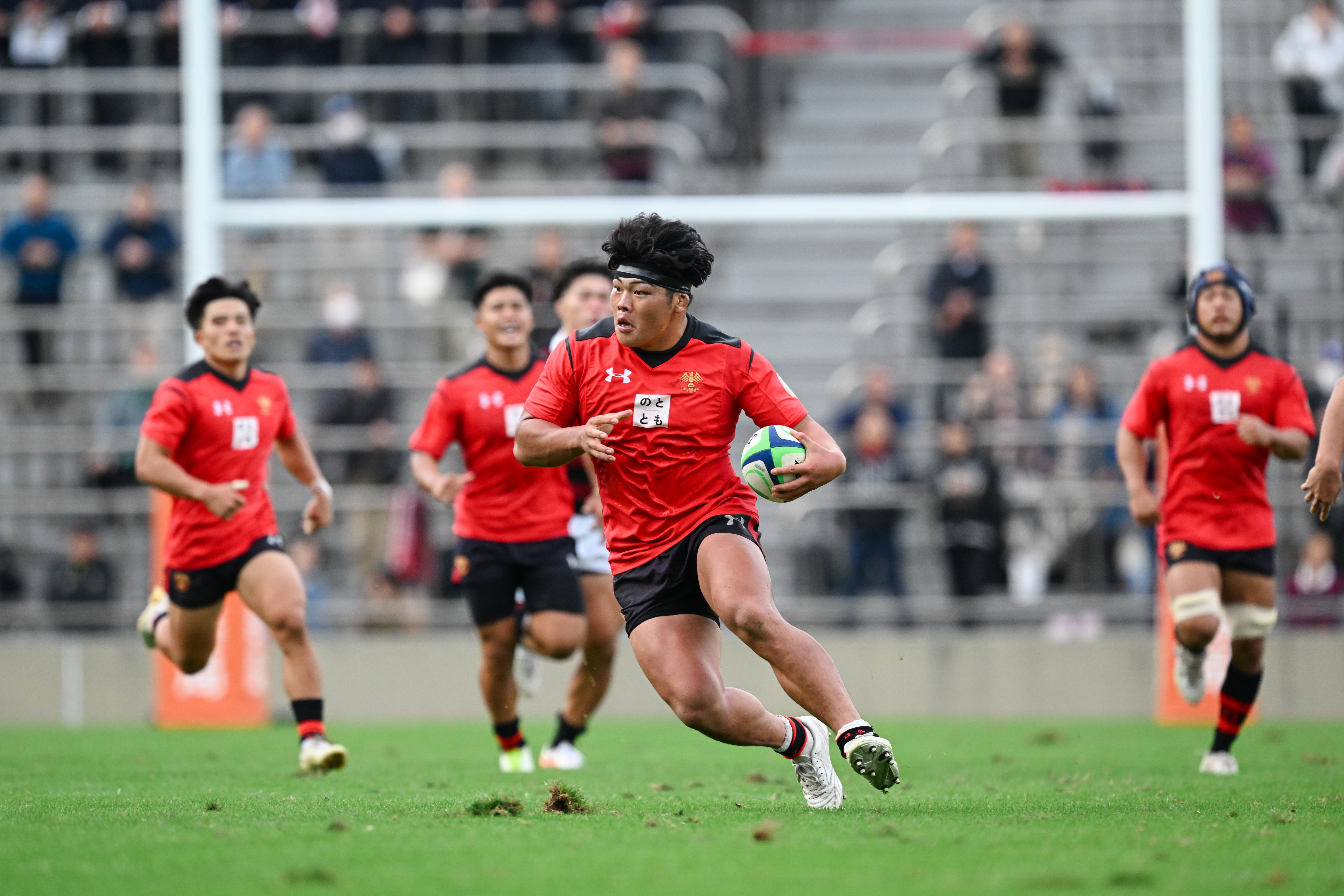 帝京の攻める時間帯はこの後も続くが、相手のディフェンスも厳しく、なかなか得点できない。44分、CTB大町がPGを決め、22-13で前半を折り返した。