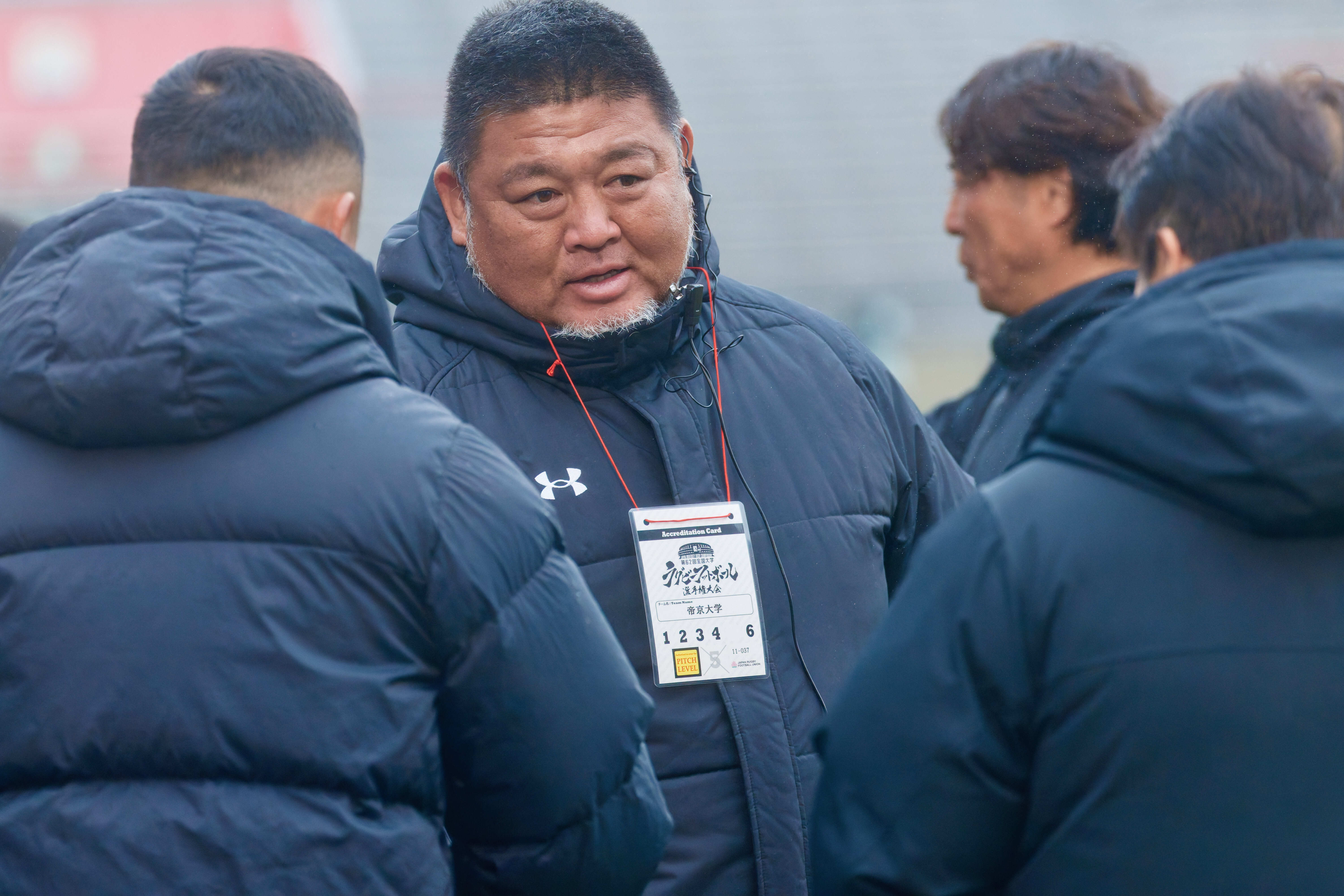 ハーフタイムには、いつも学生たちに伝えていることを改めて伝えました。それは、小さいことを大切にしようということです。我々にもチャンスはたくさんあったと思いますが、取り切れず、仕掛けきれずに、地に足がついていないようなプレーが多かったように思います。対抗戦で筑波大学さんと対戦した時と天気も似ていましたし、試合内容もよく似ているなという話もしました。