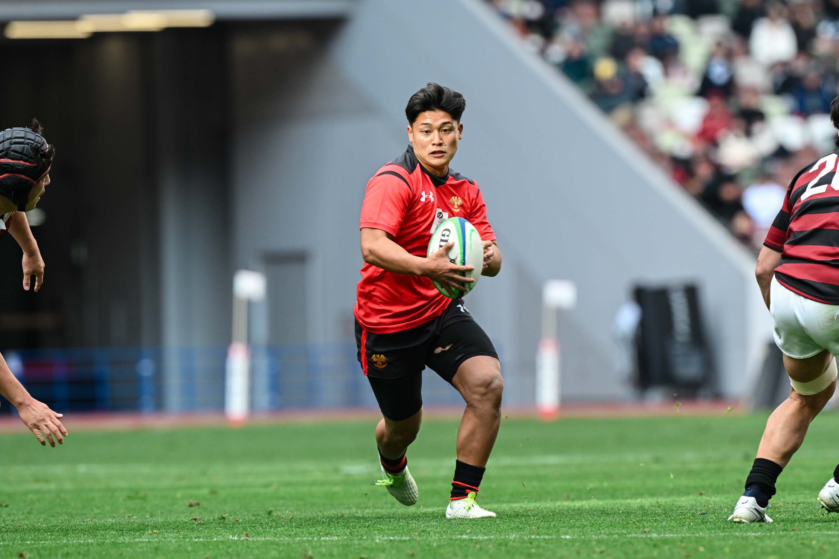 本日はたくさんの応援、ありがとうございました。自分たちが望んでいた結果ではありませんでしたが、これもラグビーをやっていれば起こることですし、今後の人生においても、負けることや悔しい思いをすることはあると思います。でも、そのたびに立ち上がっていくことが大切ですし、チームはまた来年以降、すばらしい仲間たちが本当のチャンピオンになってくれると思います。結果は結果ですし、悔しい思いをしましたが、長い人生のほんの一部分だと思っています。ゲームについては、自分は入った時間帯はスコア的にもプレッシャーがかかる点差(14点差)だったと思います。ですが、まだまだ追い付ける点差でしたし、もう一度、チームに勇気と自信を与えられたらと思って入りました。何か特別なことをするということではなく、あいているスペースに対してしっかりアタックすることを意識しました。リザーブが入ってから、すごくよくできていたと思いますが、もう少し早くからできていたら、また違ったゲーム展開になっていたかなと思っています。プレーが少し中途半端になったり、一瞬の迷いがあったようにも思います。特にBKにはもっと強気に、ボールを持ってアタックしようと伝えました。自分たちがボールを保持し続けることによって、自分たちがやりたいラグビーができ、早稲田大学さんにプレッシャーを与えることができていたと思います。それができていない時間帯に相手にスコアされていましたので、そこが敗因につながったのではないかと思っています。すばらしい後輩たちには、来年以降、またこの舞台に立って、笑って終われるように頑張ってほしいと思っています。