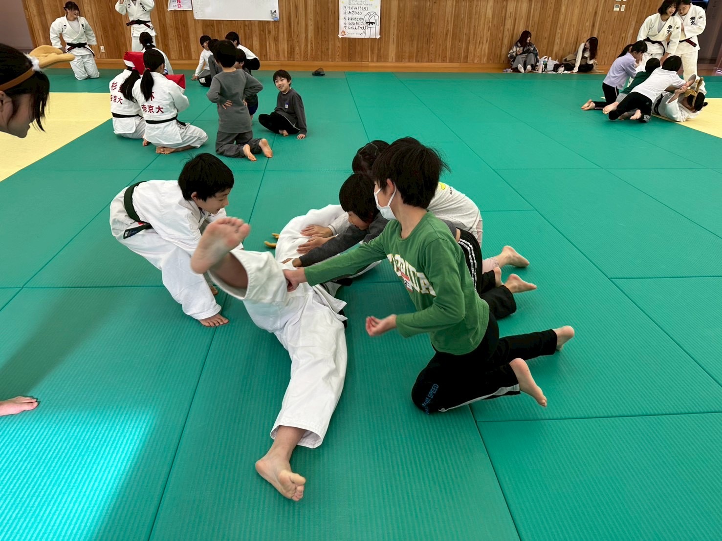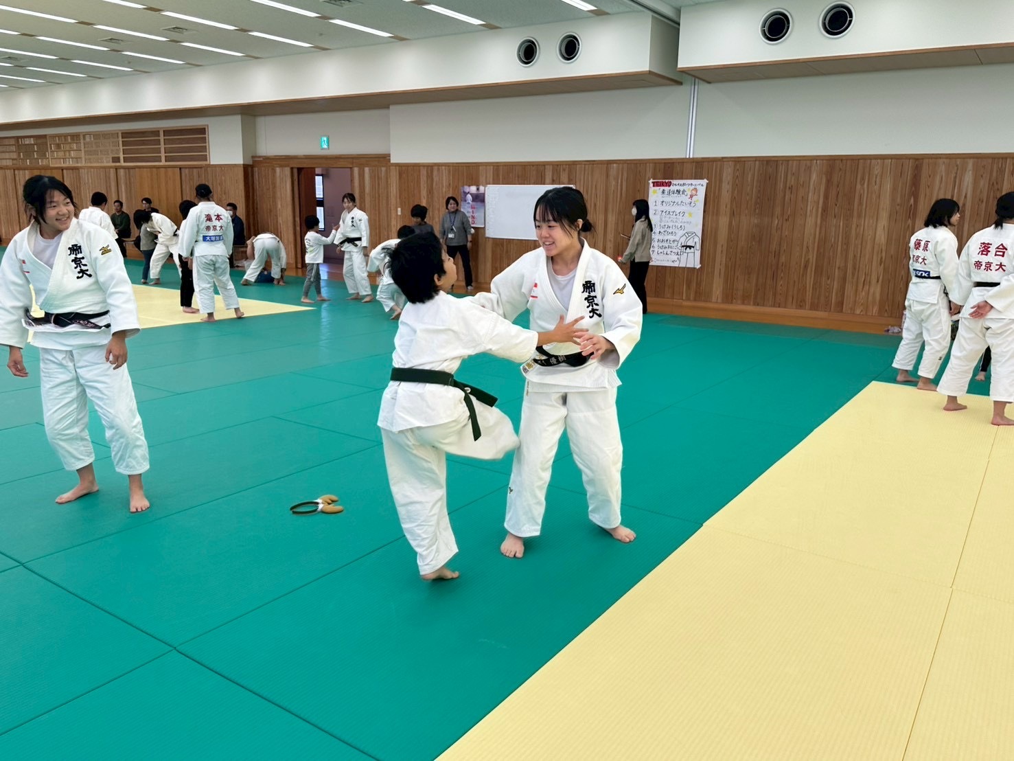 当日は、元気いっぱいの小学生と様々なゲームや、柔道の技披露、投げ体験を実施し交流を深めました。