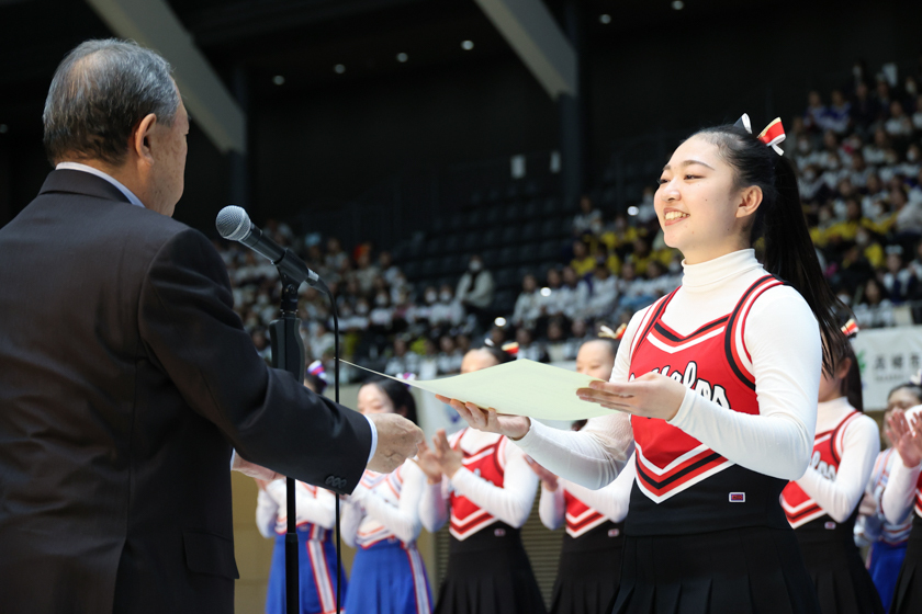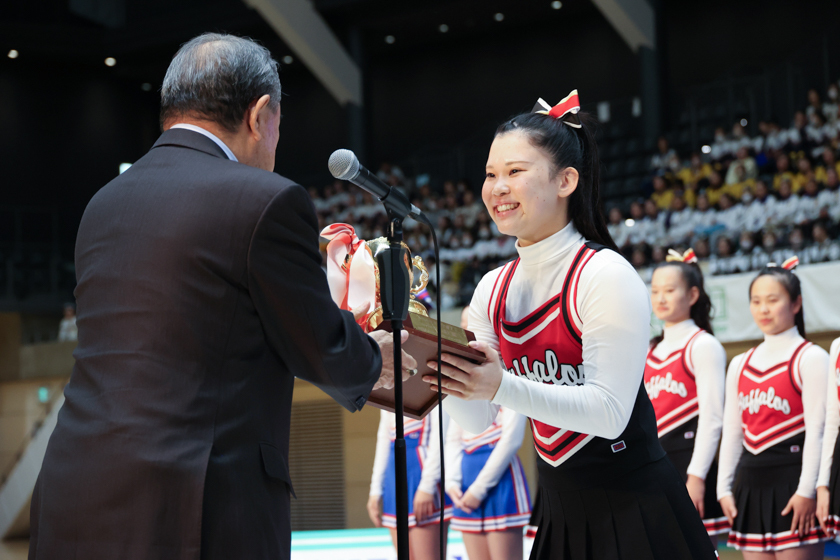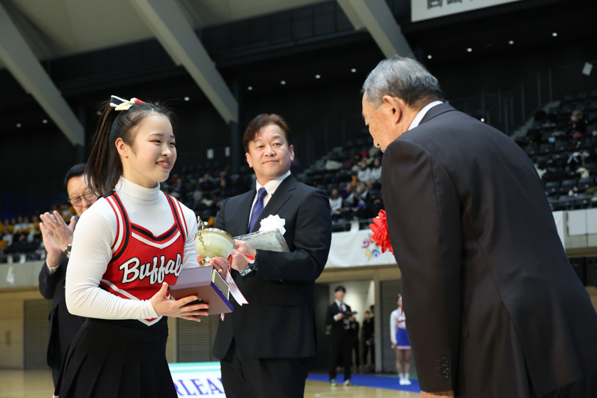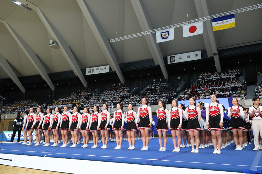 4年生はこの大会で引退となり、それぞれの新たなステージに進みます。開会式の挨拶で日本チアリーディング協会会長 中村節夫氏は「チアリーディングをしていた学生たちが社会で活躍しているお声が多数あり、とても嬉しく思います」と話されました。4年生にはこれまで帝京大学BUFFALOSで培ってきたものが社会人として発揮して活躍しもらいたいと思います。