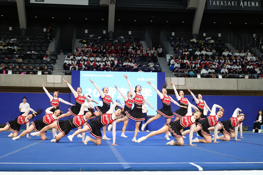 翌日は第37回全日本学生チアリーディング選手権大会が同会場で開催され、帝京大学BUFFALOSはエキシビションを含む5部門に7チームが出場し自由演技競技division①競技部門男女混成、自由演技競技division②競技部門、スピリッツ演技競技の3部門で優勝しました。今季はJAPANCUP2025で優勝を逃してからこの大会で優勝することを目標に、練習やトレーニングに励んできましたが、残念ながら目標にしていたdivision①総合優勝を逃す結果となりました。演技後の選手たちの悔しさを滲ませながらも、チアリーディングらしく笑顔で会場に勇気と元気を届ける姿がとても印象的でした。