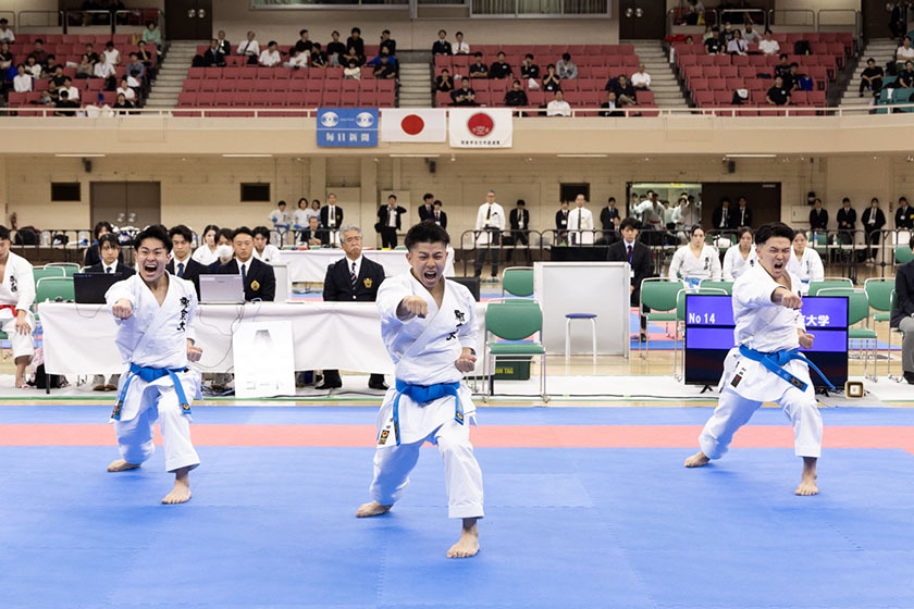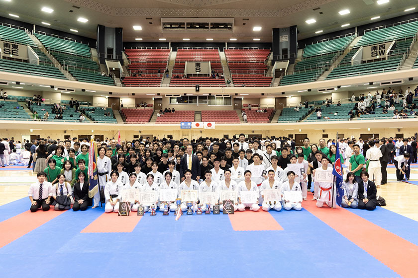 本大会は、男女団体形、男女団体組手の計4種目が行われ、男子団体形は17連覇、女子団体組手は4年ぶり通算13回目の優勝を手にしました。また、女子団体形、男子団体組手は決勝で惜敗し準優勝の成績を収めました。