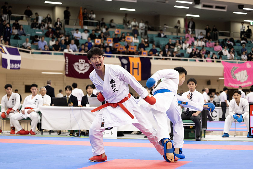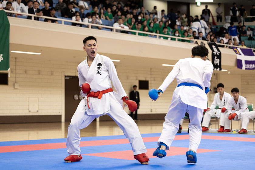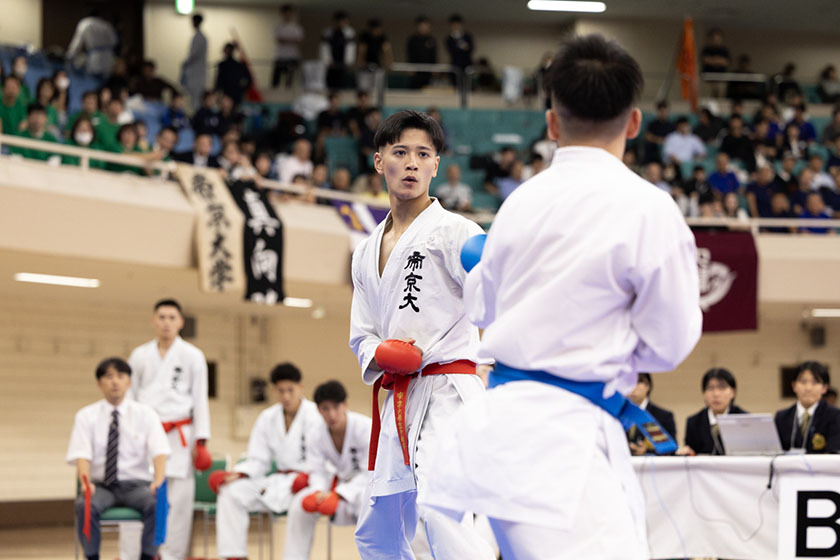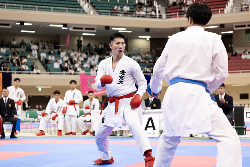 2冠となった本大会の結果について、本学空手道部監督・師範 香川政夫は「後藤主将は相手に対して一歩も引かずに戦う姿勢を貫き通していた。試合本番で、練習通りの組手ができていたのは後藤だけだった。本大会はその素晴らしさに尽きる。全日本団体まで泣いても笑ってもあと1カ月。皆でどこまでやりきれるのか、清々しく大会の日を迎えられるよう取り組んでいきたい」と話しました。
