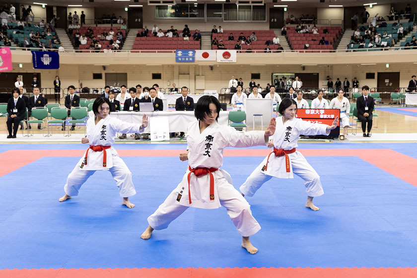 2025年10月13日(月・祝)、日本武道館(東京都千代田区)で行われた第68回関東大学空手道選手権大会にて、帝京大学空手道部の男子団体形、女子団体組手が優勝し、2冠を達成しました。