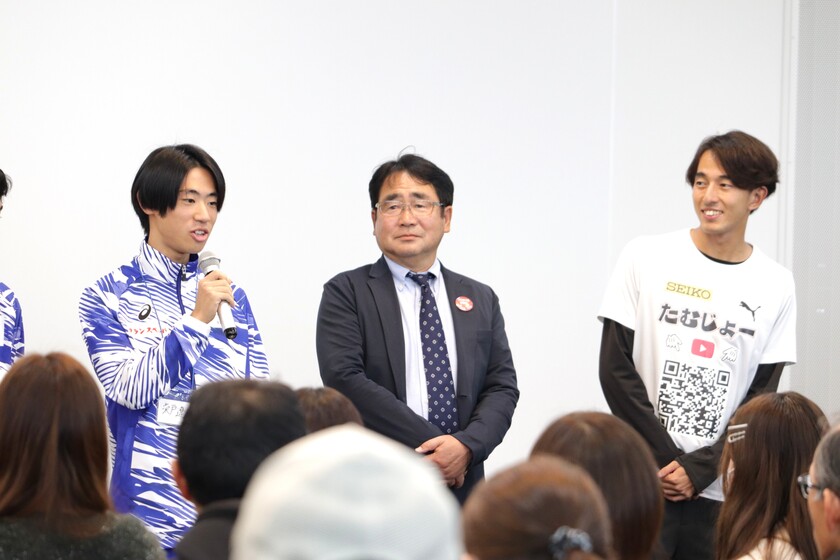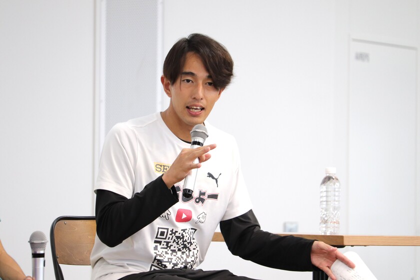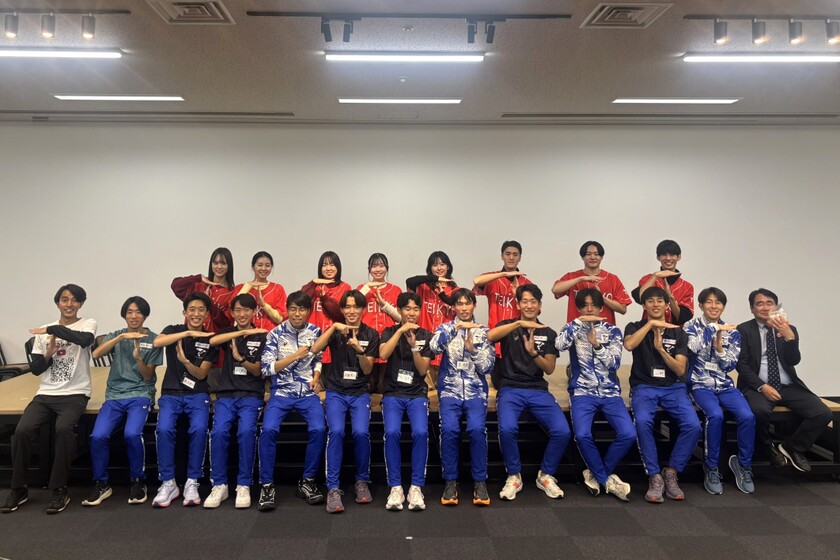 本イベントは昨年初めて開催され好評を博したことから、今年で2回目の開催となりました。また、8月に行われた駅伝競走部の強化合宿に、たむじょーさんがYouTube撮影のため参加していたこともあり、トークはより深く、盛り上がりのある内容となりました。当日は駅伝競走部監督 中野孝行と現役部員11人が登壇し、たむじょーさんや部員の視点から見た駅伝競走部の強さや魅力、現在のチーム状況、そして今後控える大会への展望など、さまざまなテーマでトークセッションが展開されました。